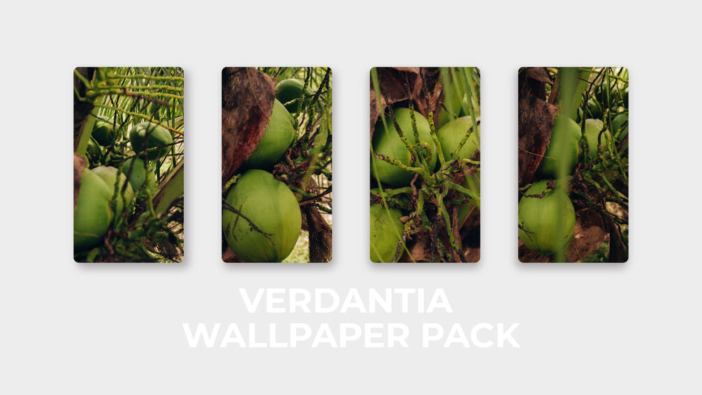 This pack includes four high-resolution images captured in the lush greenery of my backyard. Each wallpaper showcases the vibrant essence of verdant coconuts, offering a refreshing touch of nature to your digital devices.